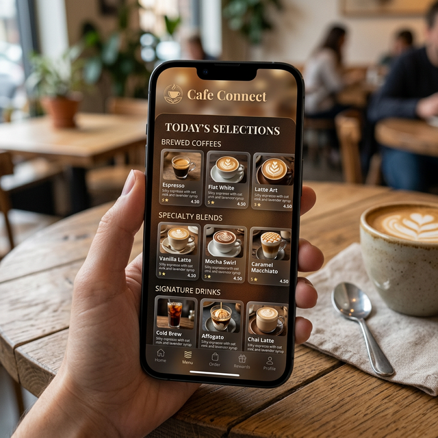 #6Bespoke mobile ordering solution for premium coffee brands, featuring fluid glass-morphism UI.
